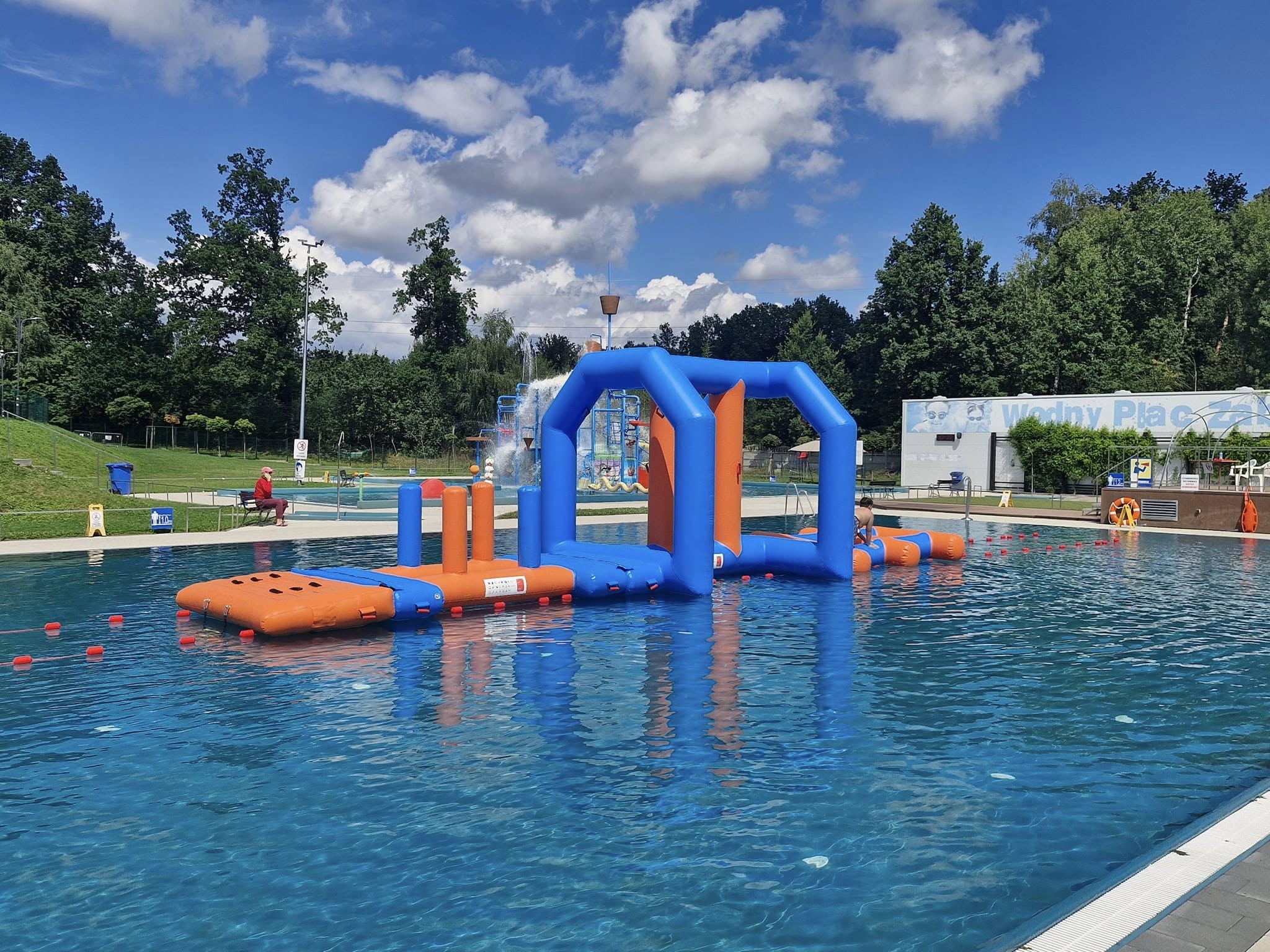 Wodny dmuchany tor przeszkód dla dzieci i dorosłych basenu miejskiego i maszt flagowy WOPR –zrealizowany