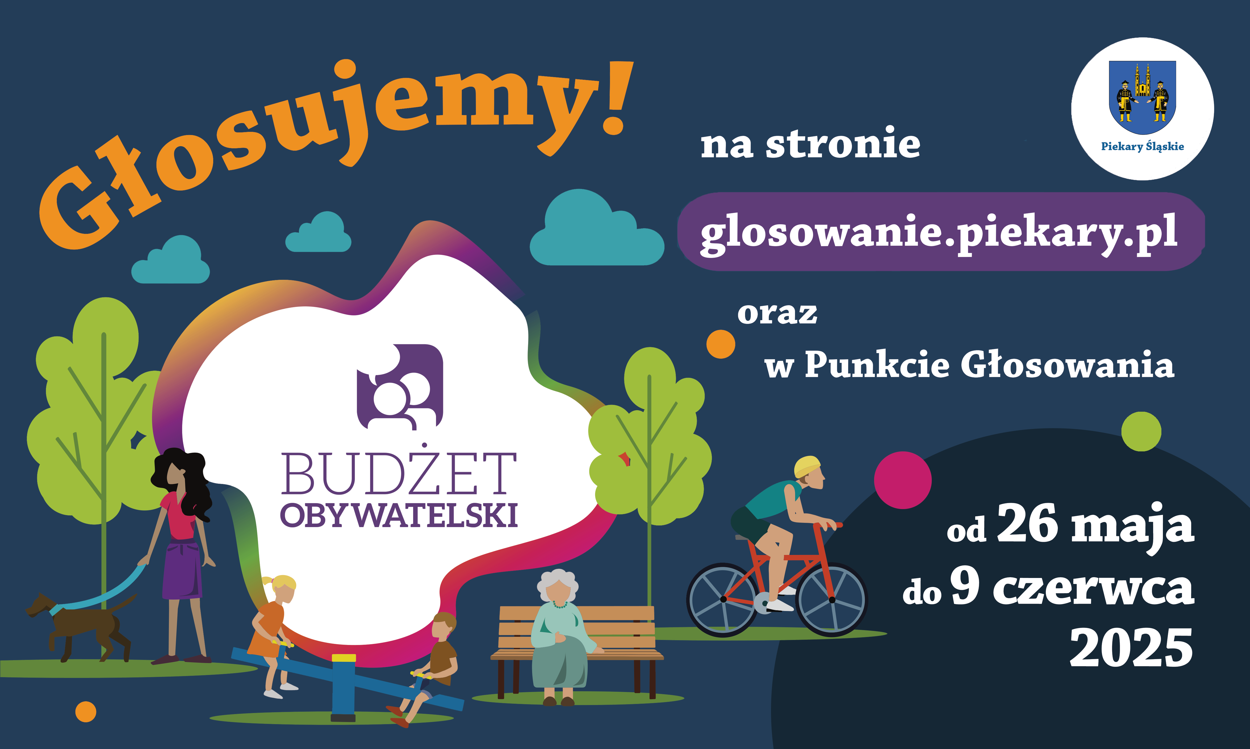 - Głosowanie internetowe mieszkańców za pomocą wypełnionej elektronicznie karty do głosowania dostępnej na stronie internetowej stronie internetowej https://glosowanie.piekary.pl/ odbywa się: od 26 maja do 9 czerwca 2025 roku.
