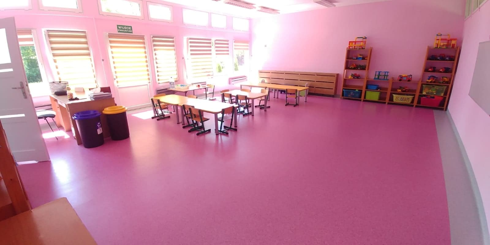 W ramach projektu uwzględniono: nowa kolorowa szatnia dla 125 wspaniałych dzieciaków w wieku przedszkolnym, która umili i ułatwi wejście dzieci do nowego miejsca podczas rozstania z rodzicami oraz będzie spełniała najwyższe standardy EU.